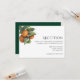Jolies, élégantes, modernes et bohèmes, cartes de réception de mariage pour votre occasion spéciale ! Le design correspond au reste de la collection Orange Leaf Foliage. Des fruits d'orange aquarelle avec des feuilles vert foncé et vert clair encadrent le haut de votre carte de réception de mariage, retournez la carte pour révéler un fond vert foncé. Personnalisez avec les détails de votre réception de mariage, y compris l'heure, le lieu et tout détail supplémentaire comme le stationnement ou le transport.