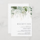 Nous avons conçu cette carte de réception de mariage vert et feuille d'or pour compléter votre mariage boho simple mais élégant. Il présente des feuilles modernes d'eucalyptus vert et blanc, du feuillage de fougères, une fleur succulente et un minimum de feuilles de feuille d'or. Ces éléments donnent l'impression d'une forêt enchantée d'aquarelle capricieuse, parfaite pour tout mariage bohème et rustique ! N'hésitez pas à vous customiser et à vous en servir, n'hésitez pas à consulter le reste de la collection pour trouver les produits correspondants et coordonnés !