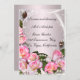 De jolies roses roses avec des perles sur fond rose. Cette belle carte de réception est prête à être personnalisée pour votre jour de mariage spécial. Personnalisez la carte en modifiant le texte dans les champs prévus à l'avant et à l'arrière. Vous pouvez changer le style, la taille et la couleur de la police, ainsi que le type et le style de papier.