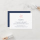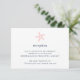 Simple et élégante carte d'invitation de réception de mariage de style côtier qui présente les détails de votre réception (horaire, lieu et adresse) en bleu marine classique, surmonté d'une illustration d'étoile de mer vintage en corail vibrant.