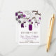 Illustrations fantaisistes de pots Mason violets et de cordes de coeurs suspendus à un arbre avec deux oiseaux amoureux entourés d'une variété de fleurs. C'est parfait pour les mariages d'été, de printemps et en plein air. Cela fait partie d'une suite d'invitation de mariage.