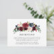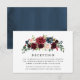 Nos cartes de réception de mariage élégantes et stylées présentent un bouquet de fleurs de couleur bourgogne, rose blush et bleu marine avec des accents de feuillage vert luxuriant. Personnalisez le design en ajoutant les détails de votre réception de mariage. Conçu pour coordonner avec notre collection de mariage Enchanted Floral.