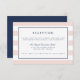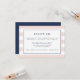 Conçu pour se coordonner avec nos invitations de mariage et d'événement Metro Stripe rose et marine, cette carte d'information de réception simple et chic présente un fond de larges bandes horizontales en rose pâle et blanc, avec les détails de votre réception de mariage dans un mélange de styles de typographie bloc moderne et script traditionnel en bleu marine riche. Ajoutez vos informations clés telles que l'heure de la réception, le lieu et le transport ou le stationnement en utilisant les champs fournis.