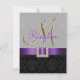 Une élégance sophistiquée est transmise par ce magnifique modèle de carton d'invitation à une réception de mariage. Un motif damassé gris et noir sur fond noir sert de toile de fond à un effet photo de l'initiale M en or métallisé et un ruban de satin violet et un broche en diamant TOUT IMPRESS en un carton plat. Un moyen parfait d'inviter vos invités à votre réception de mariage. Motif damassé contemporain, mais classique avec un design qui vous permet de personnaliser le recto avec vos noms ou le mot "réception" et le verso est libre pour ajouter votre texte personnalisé d'invitation à la réception de mariage. L'invitation de mariage est prévue pour l'initiale de monogramme "M". Pour d'autres lettres, veuillez contacter le concepteur à luxuryweddinginvitations@gmail.com. Conception de la mise en page par Elke Clarke©