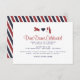 Une carte de réception pour coordonner avec la suite d'invitation 'Airmail'. Présentée dans des nuances de marine et de rouge. Espace pour imprimer vos détails de réception sur le devant, avec un motif de bandes diagonales décoratives au verso. Si nécessaire, le motif peut être supprimé et du texte supplémentaire imprimé au verso.