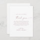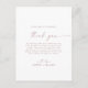 Ce script d'or rose moderne merci carte de réception est parfait pour un mariage minimaliste. Le design simple de couleur rose rose rose rose présente une typographie industrielle unique avec un style boho moderne. Personnalisable dans n'importe quelle couleur. Gardez le design minimal et élégant, en l'état, ou personnalisez-le en ajoutant vos propres graphiques et artwork. Placez ces cartes à la table de chaque invité à la réception de votre mariage. Personnalisez la carte avec vos noms et un message de remerciement spécial.