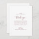 Ce script d'or rustique rose merci carte de réception est parfait pour un mariage campagnard. Le design sobre et moderne rose or rose vif et blanc présente une calligraphie manuscrite et fantaisie unique avec un style boho minimaliste contemporain. Personnalisable dans n'importe quelle couleur. Gardez le design minimal et simpliste, en l'état, ou personnalisez-le en ajoutant vos propres graphiques et artwork. Placez ces cartes à la table de chaque invité à la réception de votre mariage. Personnalisez la carte avec vos noms et un message de remerciement spécial.