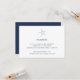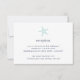 Simple et élégant, la carte d'enceinte de réception de style côtier présente vos détails de réception (timing, lieu et adresse) en bleu marine classique, surmonté d'une unique illustration vintage d'étoiles de mer en aqua turquoise.