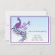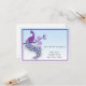 Carte de réception élégante avec un paon violet et bleu perché sur une branche avec des fleurs violettes clair sur fond bleu avec une bordure violette. Personnalisable pour toute occasion. Pièces assorties disponibles. Certains graphiques ©Riefka Designs