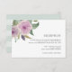 Elégante carte de réception de mariage fleurie dans les tons chic de lavande pastel violet et vert sauge dispose d'un bouquet floral aquarelle dans le coin supérieur gauche, avec vos détails de réception en lettrage noir classique. Personnalisez avec vos coordonnées de réception de mariage, y compris le moment, le lieu, l'adresse et toute information supplémentaire comme le transport ou le stationnement.