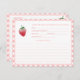 Conception de carte de recette ornée d'une seule fraise sucrée et d'une bordure à motif vichy rose et blanc. J'ai des invitations et d'autres papeteries dans le même thème de la fraise.