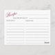 Carte de recette de douche de mariée d'hortensia r