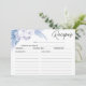 Ceci est une carte de recette de douche de mariée florale bleue de taille carte postale avec également une image de titre en calligraphie moderne.
