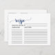 Ces cartes de recettes de douche nuptiale en calligraphie simple marine sont une excellente façon de fournir à la future mariée toutes les recettes dont elle aura besoin en tant que nouvelle épouse! Ce qui est génial avec ces cartes à double face, c'est qu'il y a beaucoup d'espace pour des recettes plus longues. Envoyez simplement ces cartes de recettes vierges avec les invitations à la douche nuptiale et demandez à vos invités d'apporter les cartes remplies avec eux à la douche.