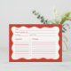 Ajoutez à votre douche nuptiale cette carte de recettes rouge et jaune éclatante, avec une charmante bordure en pâtes et un cadre ondulé. Conçu dans un style italien nostalgique, ce design audacieux est parfait pour des douches à thème cuisine, des soirées pasta ou des soirées bachelorette où les clients partagent leurs recettes préférées avec les futurs mariés. Une pièce exceptionnelle pour do-it-yourself stations ou boîtes cadeaux.