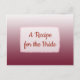 Carte de recette de mariage élégante pour l'épouse à être en Bourgogne ou en Maroon. Stick ces jolies cartes de recettes dans le faire-part de mariage ou Save the Dates pour vos amis et votre famille à remplir et revenir avec le RSVP ou au mariage.