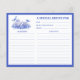 Cette carte recette a un design monochromatique avec un set de thé chinoiserie bleu et blanc entouré de fleurs et d'oiseaux. L'arrière a une bordure bleue coordonnée.