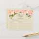 Elégante Carte de recette de Fête des mariées Rose Watercolor.