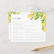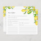 Cette carte de recettes de douche nuptiale citron aquarelle est parfaite pour les douches à thème agrumes de jardin du printemps ou d'été et les brunchs nuptiaux. Il présente des citrons d'aquarelle jaune vif et des feuilles verts, ainsi que des fleurs de citron blanc et rose. Idéal pour cette mariée qui a trouvé son pressoir principal ! Demandez à vos invités de remplir leur carte de recettes et de les apporter à votre douche nuptiale.