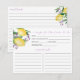 Carte recette ornée de citrons aquarelle, de feuilles verts brillants et de fleurs violettes lavande pour correspondre à mes modèles d'invitation à la douche.