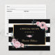 Créez une belle carte de recette pour la mariée en utilisant notre élégant modèle de carte de recettes florales rayées noir et blanc avec des fleurs roses et de la verdure.
