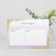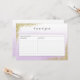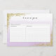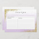 Carte de recette avec design pailleté or et fond aquarelle lavande violet ombré.