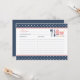 Carte recette avec outils de cuisine design et combinaison de couleurs marine et rousse.