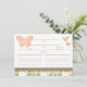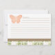 Ces jolies cartes de recette de mariage ou de shower de mariage ou pour toute occasion avec un papillon de couleur pêche et corail avec un fond floral vert moussu et un design à l'aspect de ruban cousu de jute avec un tourbillon subtil de pêche pâle et un motif de cœurs est parfait pour un mariage champêtre ou une garden party sur le thème vintage ou rustique ou un shower de mariage ou une cuisine. Le papillon sur le devant et le dos de cette carte de recette peut être personnalisé avec l'initiale ou le monogramme de la mariée rougissante, chef, cuisinier, boulanger OU L'INITIALE DU NOM DE FAMILLE DE LA NOUVELLE mariée et du marié jeune couple nouvellement marié. Œuvre d'art et design © Chrissy H. Studios, LLC. Tous droits réservés.