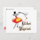 Une carte de recette personnalisée sur un côté avec espace pour votre nom de recette et des lignes pour l'écriture. L'autre côté a un Magicien de cuisine qui dit avec un mignon chef rétro cuisine un peu de magie dans la cuisine dans une police rétro brillant en noir, rouge et jaune. Elle porte une robe rouge avec un tablier jaune et sa cuillère dégouline des étincelles sur le dicton.