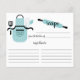 Cartes de recettes de cuisine pour la douche nuptiale rétro amusante avec tablier à pois bleu turquoise avec outils de cuisine et broche à rouler. L'avant de notre carte de recettes offre de la place pour un titre de recette, de la cuisine de et de l'espace ingrédients. Retournez notre carte de recette pour voir notre recette recouverte pour connaître les directions de recette. Visitez notre boutique pour les invitations assorties à la douche nuptiale Disponible dans notre boutique dans un large assortiment de couleurs wedding showers populaires. Insérez parfait nuptiale invitation pour un stock la douche nuptiale cuisine.