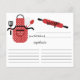 Cartes de recettes de cuisine de douche de nage rétro amusant avec un tablier à pois rouge avec outils de cuisine et broche à rouler. L'avant de notre carte de recettes offre de la place pour un titre de recette, de la cuisine de et de l'espace ingrédients. Retournez notre carte de recette pour voir notre recette recouverte pour connaître les directions de recette. Visitez notre boutique pour les invitations assorties à la douche nuptiale Disponible dans notre boutique dans un large assortiment de couleurs wedding showers populaires. Insérez parfait nuptiale invitation pour un stock la douche nuptiale cuisine.