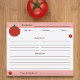 Une carte de recettes aux tons rouges avec des illustrations de tomates : parfait pour partager vos recettes favorites (sauce, jus, gazpacho, sauce à pizza, sauce spaghetti) avec vos amis et votre famille. Vous pouvez également l'utiliser sous une douche nuptiale !