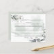 CARTE DE RECETTES | Rustique Elegant Aquarelle Feuilles verts - teintes de vert poussiéreux avec blanc ivoire - vert foncé et pâle vert eucalyptus - le tout posé sur un arrière - plan d'aquarelle vert pur - réception calligraphie manuscrite - facile à customiser modèle - design original par ©WhimsicalArtwork™ pour la BarefootBride ™. Cela fait partie d'une suite complète de papeterie mariage, ainsi que Baby shower, Anniversaire et Invitations de Christening. Pour toute question ou assistance, veuillez contacter le concepteur indy.designer@yahoo.com.