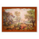C'est une réimpression d'une lithographie vintage, initialement par et appelée "La récolte à domicile des agriculteurs" montrant une ferme des années 1800 avec les hommes travaillant dans les champs pour récolter le foin et les femmes visitant l'arrière - plan près de la belle ferme.