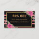 Moderne élégant noir et rose pastel rayures avec bordure dorée mignon fleurs rose aquarelle et dos code QR réduction carte de visite sur arrière - plan rose. Vous pouvez facilement changer tous les détails, polices, couleur, taille et couleur arrière - plan, avant et arrière des deux côtés. Remplacez votre propre code QR par votre site web sur votre compte de médias sociaux.
