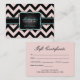 Élégant Pastel Pink et Black Chevron Certificat cadeau. Salon et cartes-cadeaux Spas.