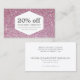 Coordonner avec le modèle de carte de visite ELEGANT WHITE EMBLEM ON PINK PARTIES SCINTILLANT d'ici 1201h. Idéal pour les promotions de vacances ou à tout moment de l'année. Customisez les champs avec votre propre remise et texte. © 1201AM CREATIVE