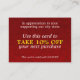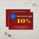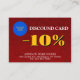 Carte de réduction professionnelle de luxe personnalisée Augmentez le fiançailles client et faites des ventes avec cette carte de réduction de luxe audacieuse, conçue pour laisser une impression durable. Le riche arrière - plan rouge exhale élégance et urgence, ce qui fait de votre offre spéciale se démarquer. Avec un design élégant et professionnel, cette carte vous permet de télécharger le logo de votre entreprise, assurant une forte reconnaissance de marque à chaque transaction. Idéale pour les magasins de détail, les restaurants, les salons et les entreprises de services, cette carte de réduction est dotée d'une disposition claire et contrastée en or et en blanc, ce qui facilite la compréhension et l'utilisation des clients. Imprimé sur des carnets durables et de haute qualité, il est parfait pour les programmes de fidélité, les promotions et les campagnes d'appréciation du client. Caractéristiques : - arrière - plan de luxe exceptionnel pour un look audacieux et attrayant - Personnalisable avec votre logo pour une image de marque améliorée - Élégant texte or et blanc pour une touche professionnelle - Cartes de haute qualité pour la durabilité et la sensation de qualité supérieure - Idéal pour les programmes de fidélité, les promotions et les cadeaux Faites de vos promotions se démarquer avec cette carte rouge dynamique de réduction, conçue pour stimuler la fidélité des clients et la croissance des entreprises!