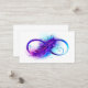Symbole de l'infini avec une belle plume peinte en couleurs vives violettes et bleues sur fond blanc.