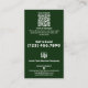 The back provides all essential business information in a clean, organized layout on a green background with white text: