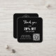 Un logo commercial personnalisé minimaliste noir et blanc QR code carte de réduction pour une entreprise professionnelle à utiliser comme outil promotionnel pour développer la fidélité des clients. Remplacez l'image par une photo carré de votre logo. Vous pouvez modifier la police, la couleur de police, la taille de police, l'espacement des lettres, la couleur arrière - plan, la couleur du graphique du Merci et repositionner le texte à l'aide de l'outil de conception. Vous pouvez également modifier les icônes des médias sociaux afin qu'elles soient pertinentes pour votre entreprise. Le design élégant et simple et moderne vous customisera comme vous le souhaitez.
