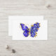 Bijoux, bleu, saphir, papillon aux fleurs pétillantes avec aile décorée de bleu, fleurs précieuses avec feuilles d'or sur arrière - plan blanc.