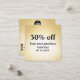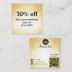 Parties scintillant glamour Gold QR Code Loyauté Cartes de réduction pour les entreprises de beauté! Ajoutez une touche d'éclat à votre programme de fidélité client avec ces cartes de réduction de code QR or de parties scintillant glamour. Parfaites pour les maquilleurs, les cosmétologistes, les salons de beauté et les entreprises connexes, ces cartes exsument le raffinement et le style. Le faux or métallique et arrière - plan parties scintillant fluide crée une sensation luxueuse, tandis que le texte noir contrasté assure une lisibilité claire. "Ajoutez votre réduction" est affiché en haut de la page, permettant des offres personnalisées. Le verso de la carte offre un espace suffisant pour inclure votre nom d'entreprise, adresse, numéro de téléphone, courriel, site Web et un code QR numérisable qui se lie directement à votre présence en ligne. Ces cartes sont une façon fantastique de récompenser les clients fidèles, d'encourager les entreprises répétitives et d'élever l'image de votre marque. Impressionnez votre clientèle avec ces cartes de réduction chic et professionnelle qui reflètent la haute qualité de vos services et ajoutent une touche de glamour à chaque transaction. __________________________________ Impressionnez votre clientèle avec ces cartes de réduction chic et professionnelle qui complètent parfaitement vos services de haute qualité.