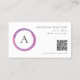 Carte De Réduction Pink and Purple Monogram QR Code Modern
