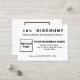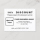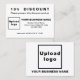 Attirer plus de clients. Convainquez plus de clients à acheter vos produits ou à aimer vos services en offrant des rabais. Faites également de la publicité pour votre entreprise, faites la promotion de votre marque ou faites de la sensibilisation à votre marque. Customisez cette carte de réduction en spécifiant la remise en pourcentage que vous offrirez, la date de validité, le téléchargement du logo de votre entreprise, en tapant votre nom d'entreprise ou d'entreprise, votre adresse et votre numéro de téléphone. La conception de la carte de réduction est simple noir et blanc. Veuillez vérifier l'apparence après avoir téléchargé le logo et tapé des textes. Si l'apparence vous plaît, vous pouvez passer votre commande maintenant. Si vous avez besoin de redimensionner et déplacer le logo et les textes pour s'adapter à cette carte de réduction ou à d'autres formes et tailles que vous choisirez, veuillez modifier dans l'outil de conception. Vous pouvez également effectuer d'autres modifications en fonction de vos préférences dans l'outil de conception, comme modifier la couleur de la carte de réduction, la couleur de police, le style de police, modifier des textes, ajouter des textes et supprimer des textes.