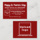 Bonne Saint Patrick’s Day ! Un autre jour férié pour célébrer cette Marche et faire de la publicité pour votre entreprise ou pour promouvoir votre marque. Attirer plus de clients en leur donnant remise, l'une des stratégies marketing pour avoir plus de clients. Le vert est toujours la couleur de ce séjour mais essayez aussi d'autres couleurs. Carte de réduction couleur rouge personnalisable que vous pouvez utiliser pour attirer plus de clients pour acheter vos produits ou clients à aimer vos services. Il peut s'agir de la couleur qui correspond à votre schéma de couleurs d'entreprise. Carte de réduction avec votre marque d'entreprise comme matériel de marketing que vous pouvez également utiliser pour sensibiliser la marque. Pour customiser cette carte d'escompte, spécifiez le pourcentage de remise que vous proposerez et la date de validité. Téléchargez également votre logo d'entreprise, tapez votre nom d'entreprise, votre adresse et votre numéro de téléphone. Veuillez vérifier l'apparence sur les côtés avant et arrière après avoir téléchargé le logo et tapé des textes. Si l'apparence vous plaît, vous pouvez passer votre commande maintenant. Si vous avez besoin de redimensionner et déplacer le logo et les textes pour s'adapter à cette carte de réduction, s'il vous plaît changer dans l'outil de conception. Vous pouvez également modifier la couleur arrière - plan, la couleur de police et le style de police dans l'outil de conception. Je vous souhaite le meilleur de la chance, de la joie et plus de ventes ce jour férié.