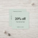 Arrière - plan vert Sage, texte noir Sur le devant : Ajoutez-vous une remise. Retour : Personnalisez et ajoutez votre nom, adresse, numéro de téléphone, courrier, adresse de site, code qr à votre site Web ou compte de médias sociaux.