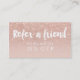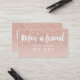 Référez un ami avec cette carte de référence de maquillage moderne et élégant avec une typographie de brosse de style main moderne en blanc sur une parties scintillant d'or rose faux et rose pastel tendance et arrière - plan élégant. Si vous avez besoin de personnalisation, n'hésitez pas à me contacter