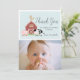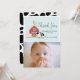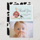 Cette jolie carte photo de remerciement pour l'anniversaire d'un garçon moderne présente un cochon, une poule et une vache avec une grange rouge sur un fond bleu clair encadré par une bordure blanche. Le verso présente un fond blanc avec des motifs de vache noirs. Personnalisez selon vos besoins. Vous pouvez trouver des produits assortis dans ma boutique.