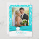Ce cadre festif digne de turquoise et de flocons de neige blancs carte de remerciement photo a un ruban et un médaillon bleu aqua FAUX dessus. Il correspond à l'invitation de mariage présentée ci-dessous. Il existe également une petite carte de remerciement de style carte de vœux sans zone de modèle de photo présentée ci-dessous, si vous le préférez. Si vous avez besoin d'autres éléments assortis dans ce design, veuillez envoyer votre demande par courriel à niteowlstudio@gmail.com.
